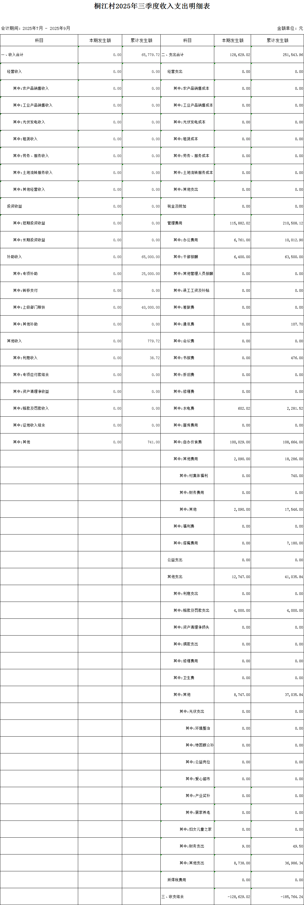 【財(cái)務(wù)收支】小松鎮(zhèn)桐江村2025年3季度財(cái)務(wù)收支公示