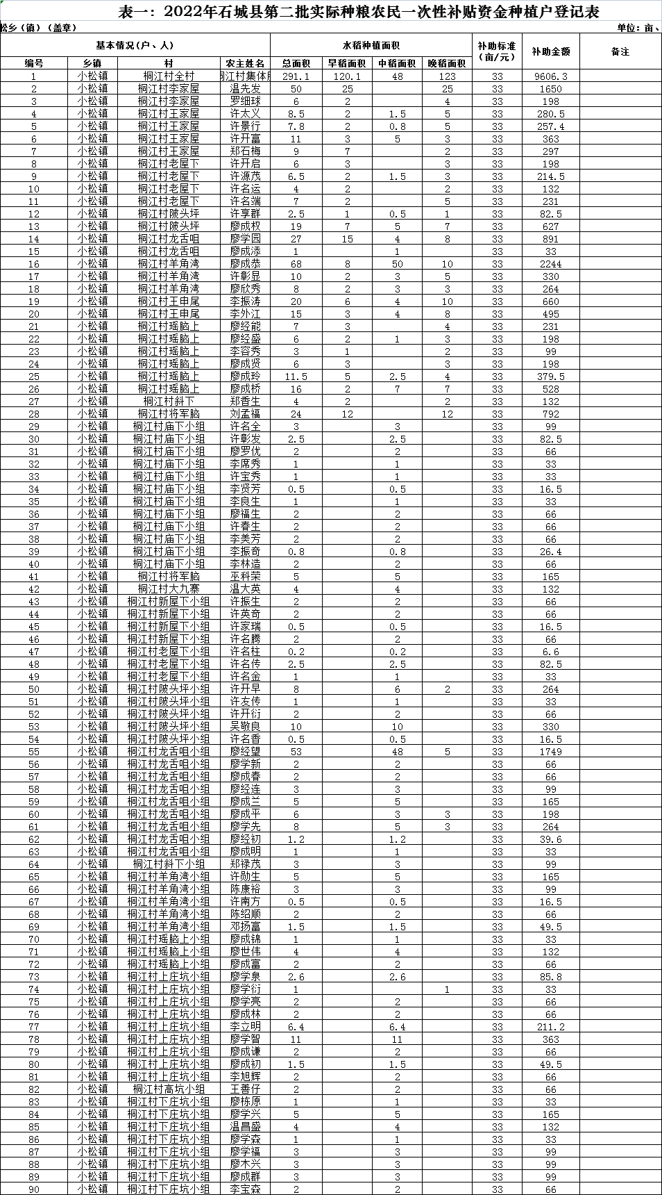 【產(chǎn)業(yè)扶持】桐江村2022年第二批實際種糧農(nóng)民一次性補貼資金種植戶公示表