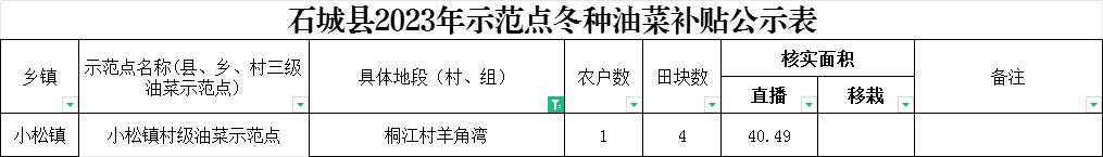 【涉農(nóng)補貼】石城縣小松鎮(zhèn)桐江村2023年冬種油菜補貼公示表