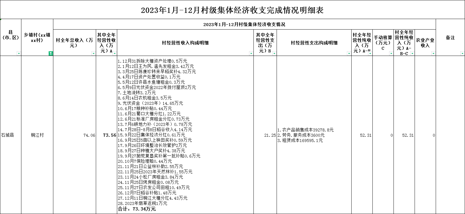 【集體統(tǒng)一經(jīng)營的經(jīng)營性資產(chǎn)】石城縣小松鎮(zhèn)桐江村2023年村集體經(jīng)濟收入情況公示表