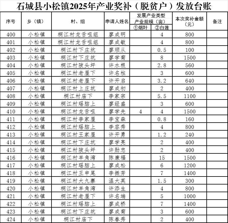 石城縣小松鎮(zhèn)桐江村2025年第一批產(chǎn)業(yè)獎(jiǎng)補(bǔ)發(fā)放臺(tái)賬