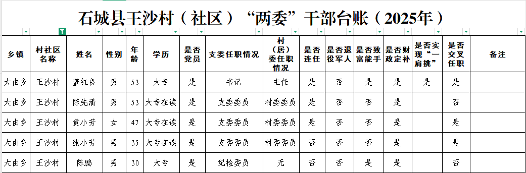石城縣王沙村(社區(qū))“兩委”干部臺(tái)賬(2025年)