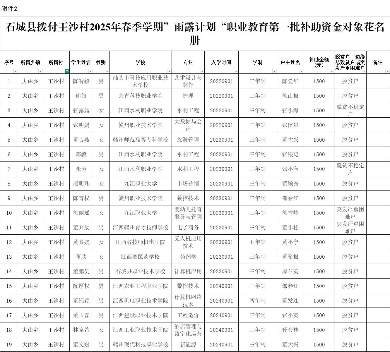 石城縣撥付王沙村2025年春季學(xué)期”雨露計(jì)劃“職業(yè)教育第一批補(bǔ)助資金對(duì)象花名冊(cè)