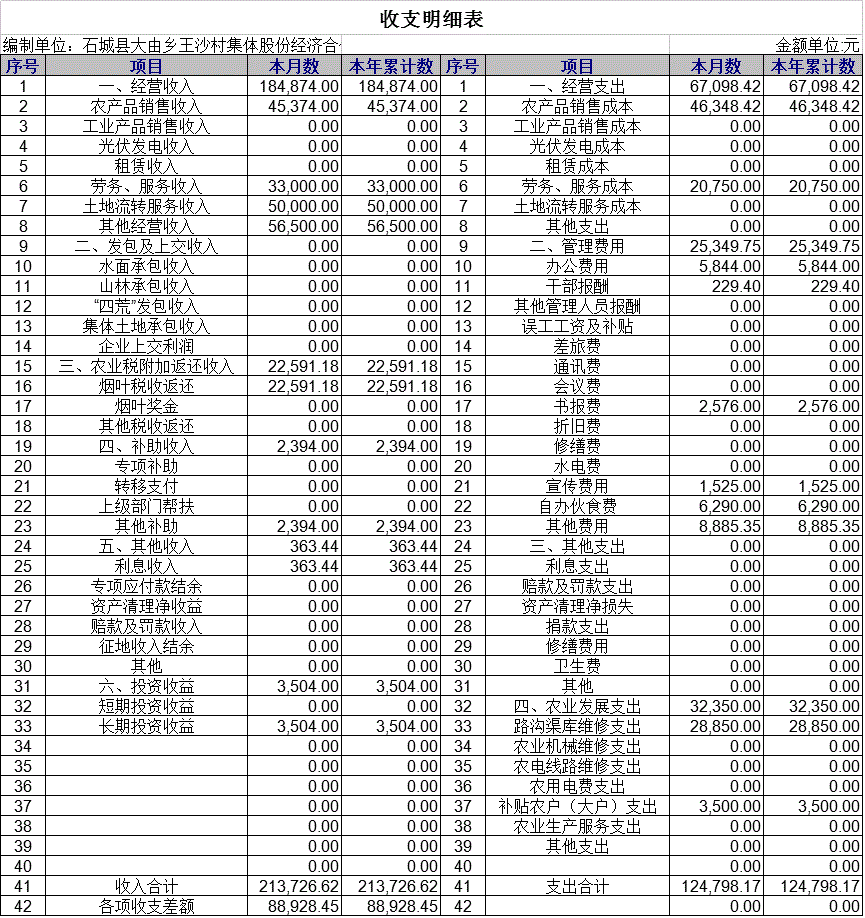 大由鄉(xiāng)王沙村1-6月收支明細(xì)