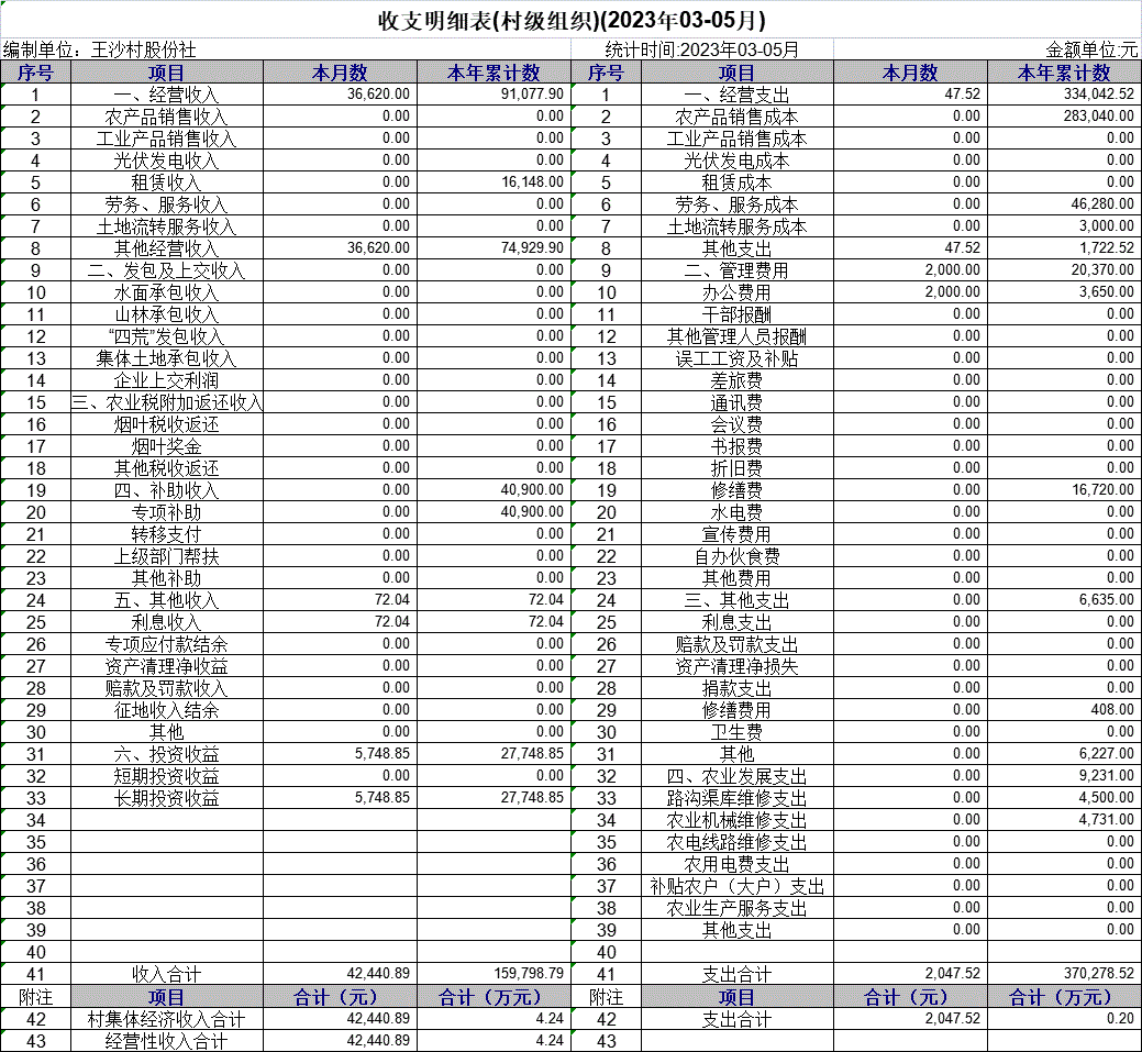 大由鄉(xiāng)王沙村2023年3-5月收支明細(xì)