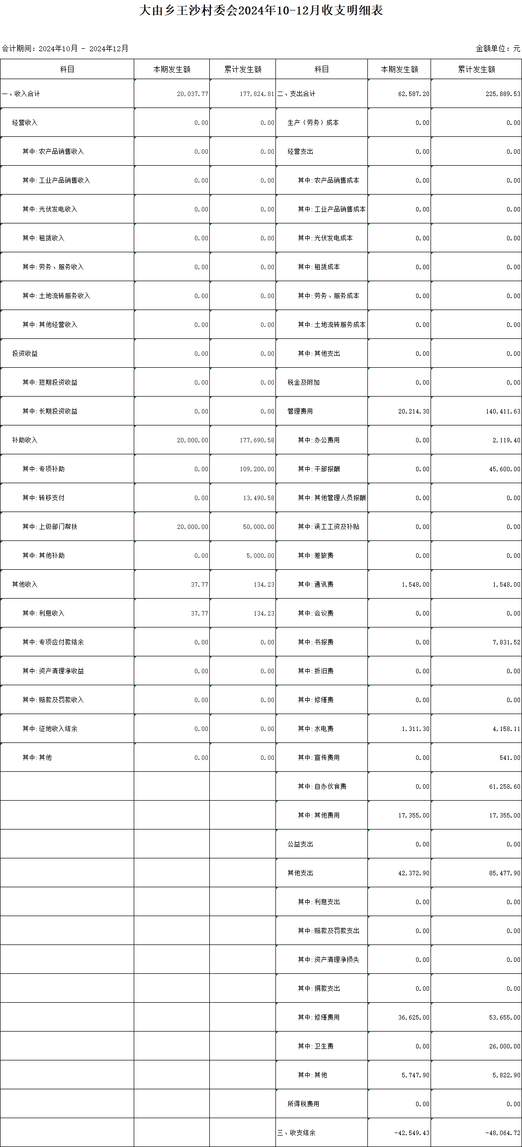 大由鄉(xiāng)王沙村委會(huì)2024年10-12月收支明細(xì)表