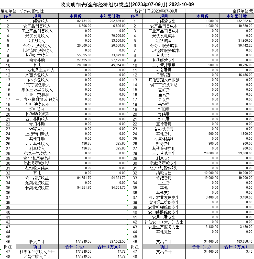 【財(cái)務(wù)收支】小松鎮(zhèn)許坊村2023年3季度財(cái)務(wù)收支公示