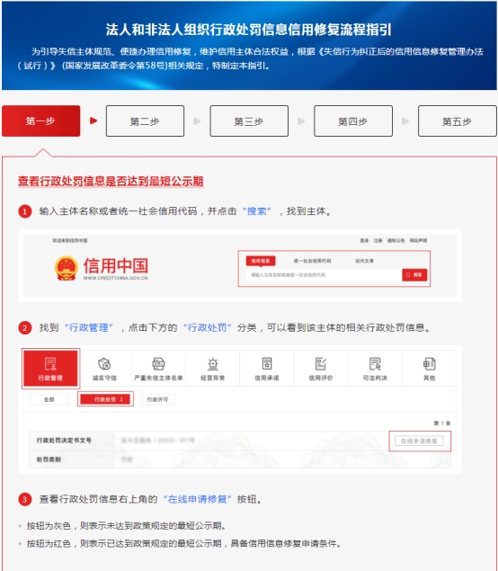 行政處罰信息信用修復(fù)流程指引