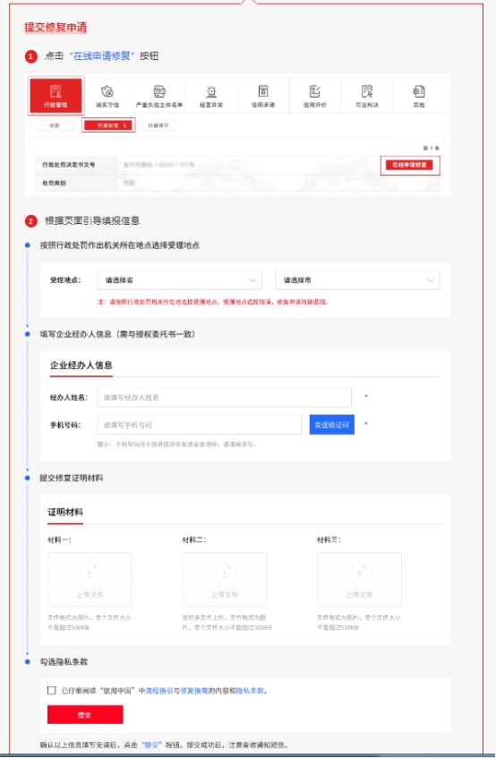 在線修復(fù)網(wǎng)址:https://www.creditchina.gov.cn/