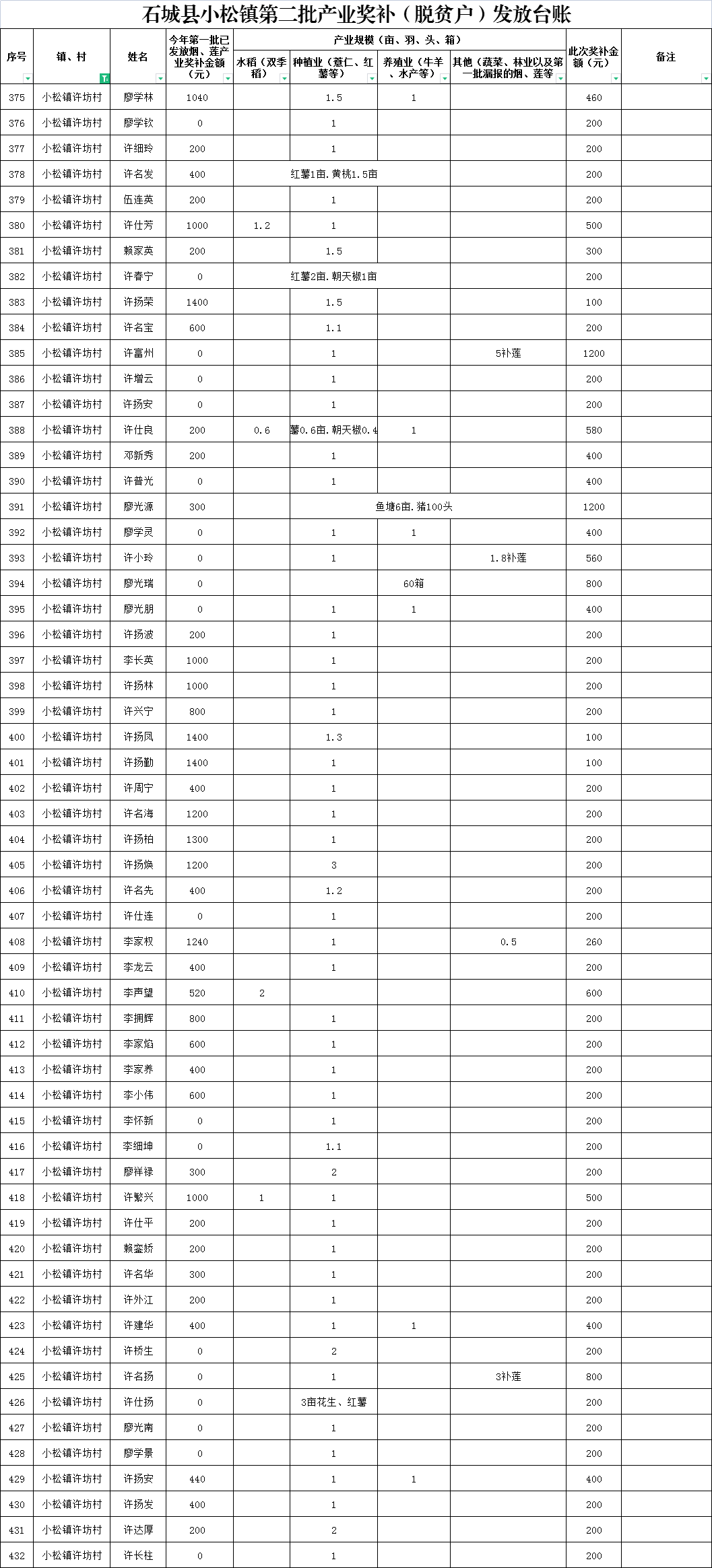【產(chǎn)業(yè)扶持】石城縣小松鎮(zhèn)許坊村第二批產(chǎn)業(yè)獎(jiǎng)補(bǔ)(脫貧戶)發(fā)放臺(tái)賬