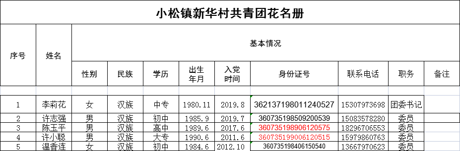 【其他人員信息】共青團(tuán)員花名冊(cè)