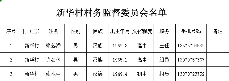 【其他人員信息】村務(wù)監(jiān)督委員會(huì)名單