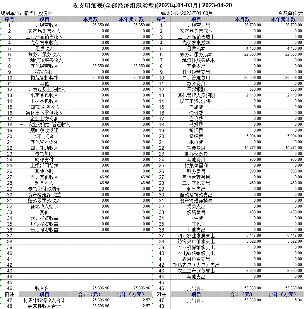 【財務(wù)收支】小松鎮(zhèn)新華村2023年1季度財務(wù)收支公示