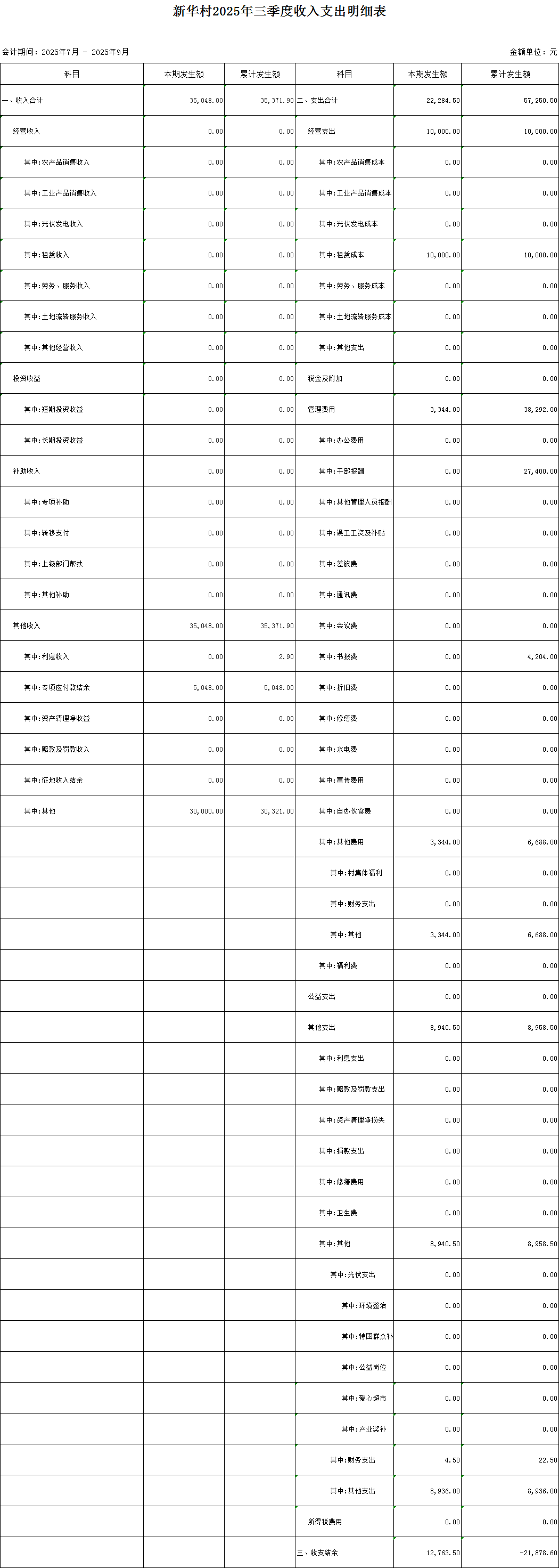 【財務收支】小松鎮(zhèn)新華村2025年3季度財務收支公示
