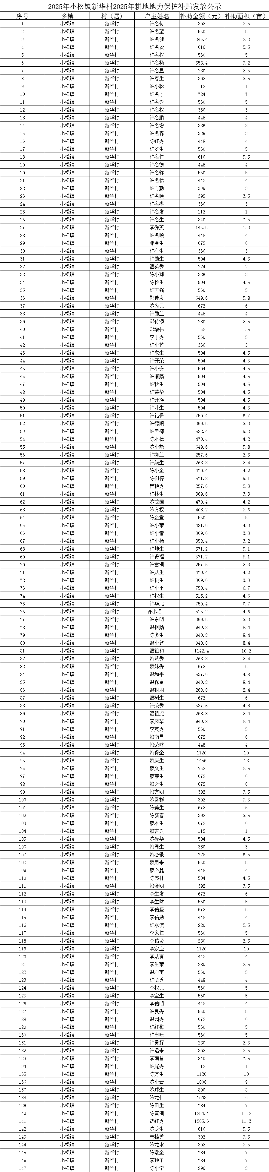 【惠農(nóng)補貼】小松鎮(zhèn)新華村2025年耕地地力保護補貼發(fā)放公示