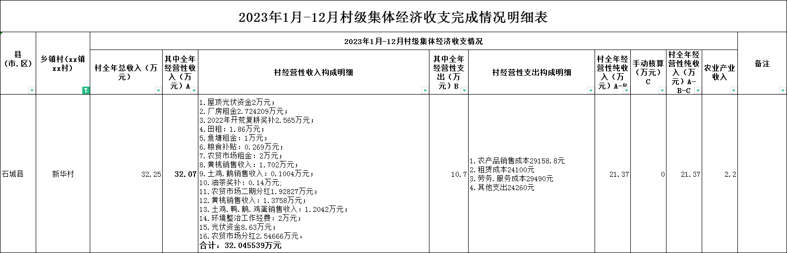 【集體統(tǒng)一經營的經營性資產】石城縣小松鎮(zhèn)新華村2023年村集體經濟收入情況公示表