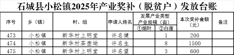 石城縣小松鎮(zhèn)新華村2025年第一批產(chǎn)業(yè)獎補發(fā)放臺賬