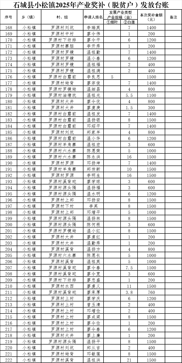 石城縣小松鎮(zhèn)羅源村2025年第一批產(chǎn)業(yè)獎(jiǎng)補(bǔ)發(fā)放臺賬