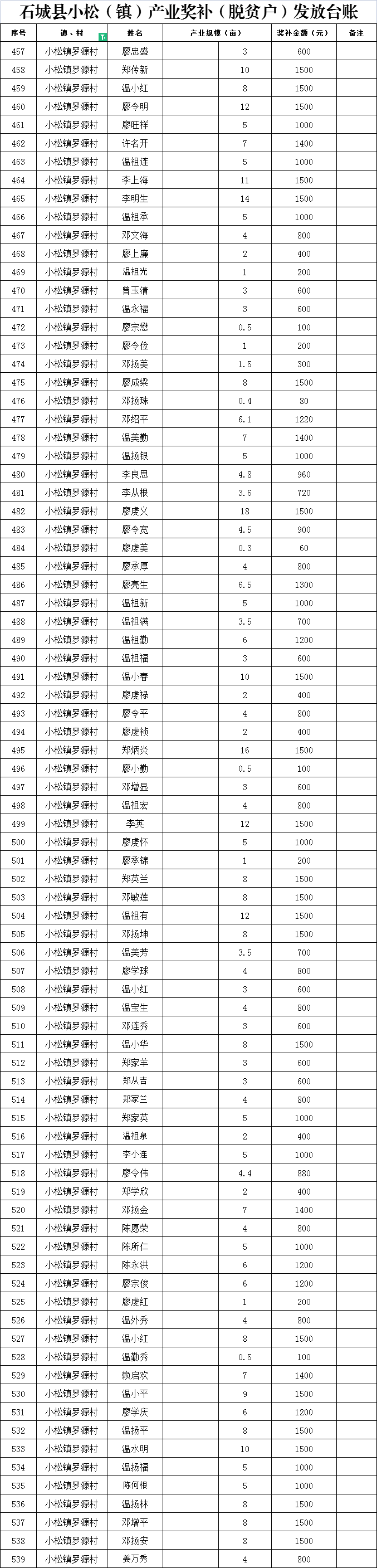 【產(chǎn)業(yè)扶持】石城縣小松(鎮(zhèn))產(chǎn)業(yè)獎(jiǎng)補(bǔ)(脫貧戶)發(fā)放臺(tái)賬