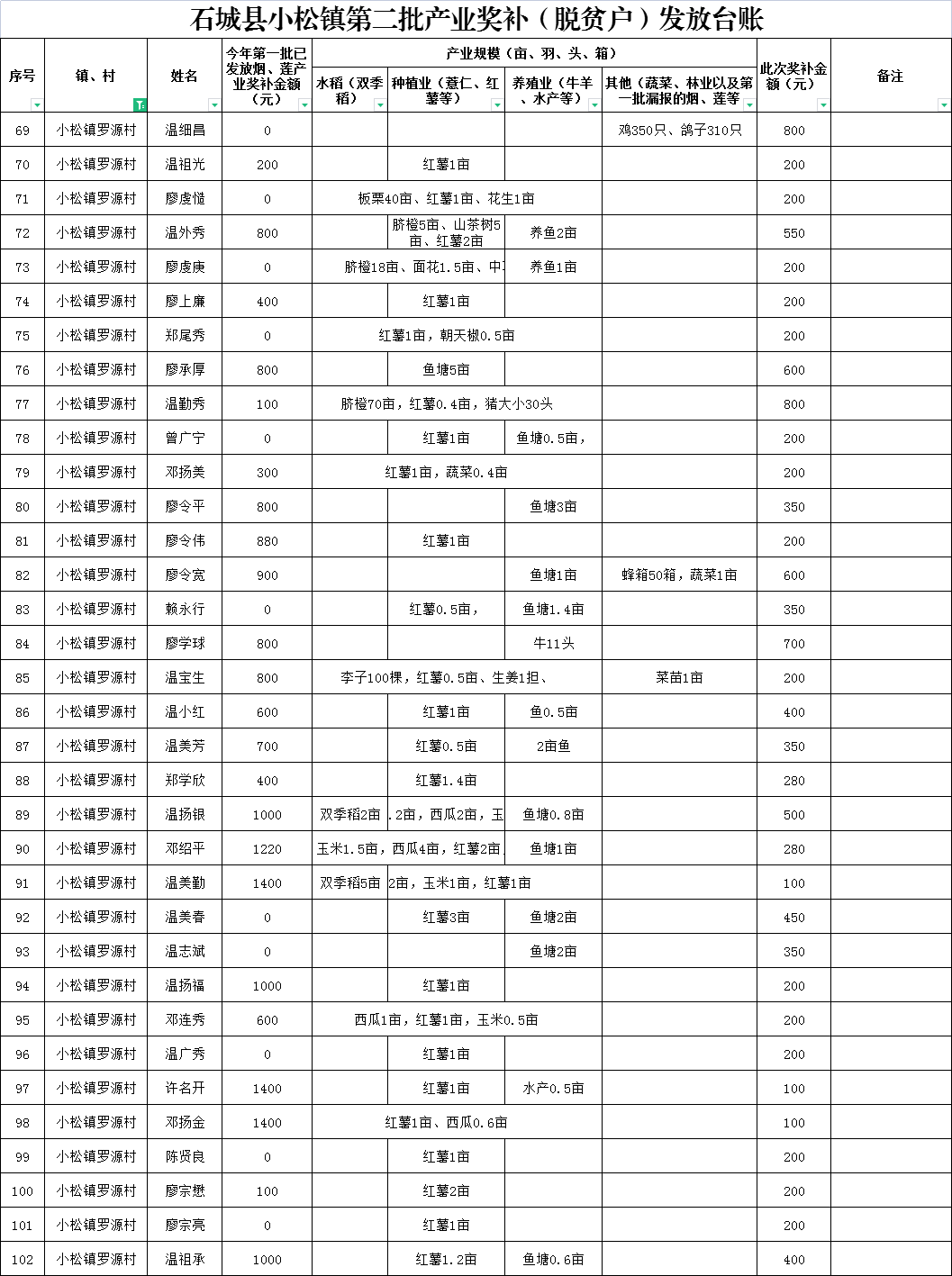 【產(chǎn)業(yè)扶持】石城縣小松鎮(zhèn)羅源村第二批產(chǎn)業(yè)獎補(脫貧戶)發(fā)放公示表
