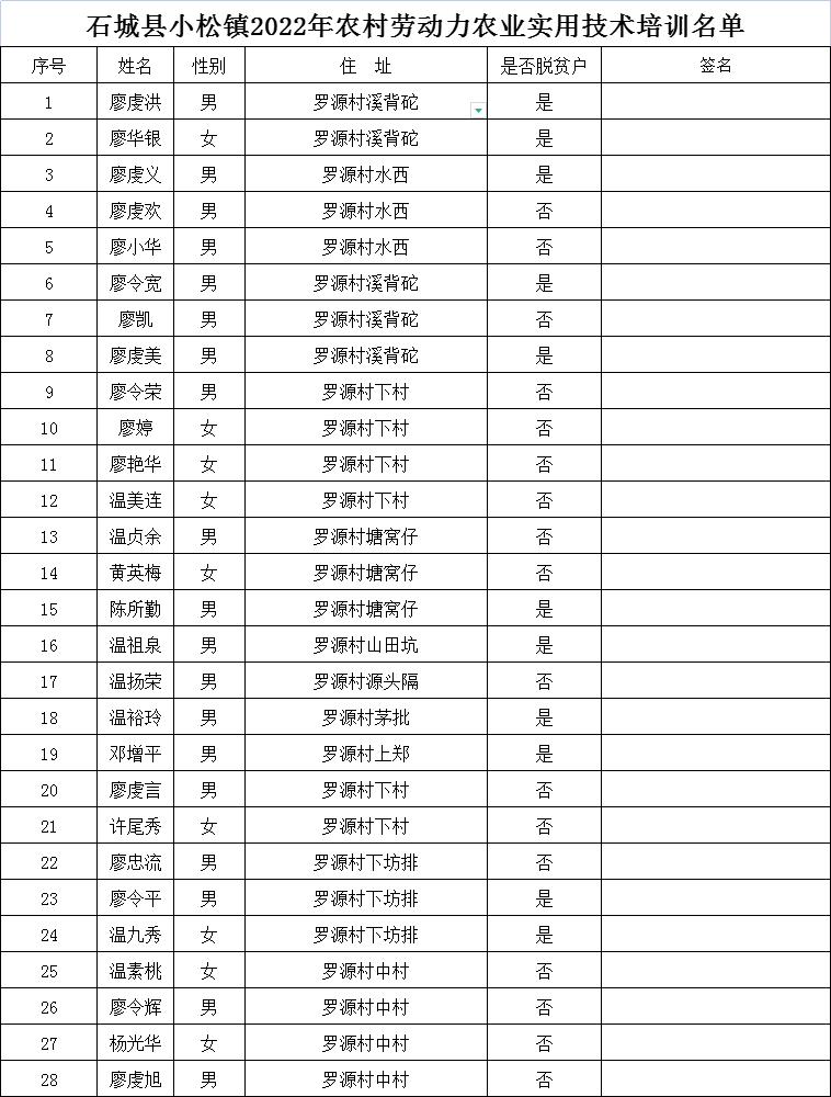 【產(chǎn)業(yè)扶持】羅源村2022年農(nóng)村勞動力農(nóng)業(yè)實(shí)用技術(shù)培訓(xùn)人員名單
