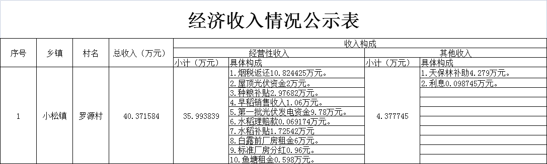 【集體統(tǒng)一經營的經營性資產】石城縣小松鎮(zhèn)羅源村2022年村集體經濟收入情況公示表