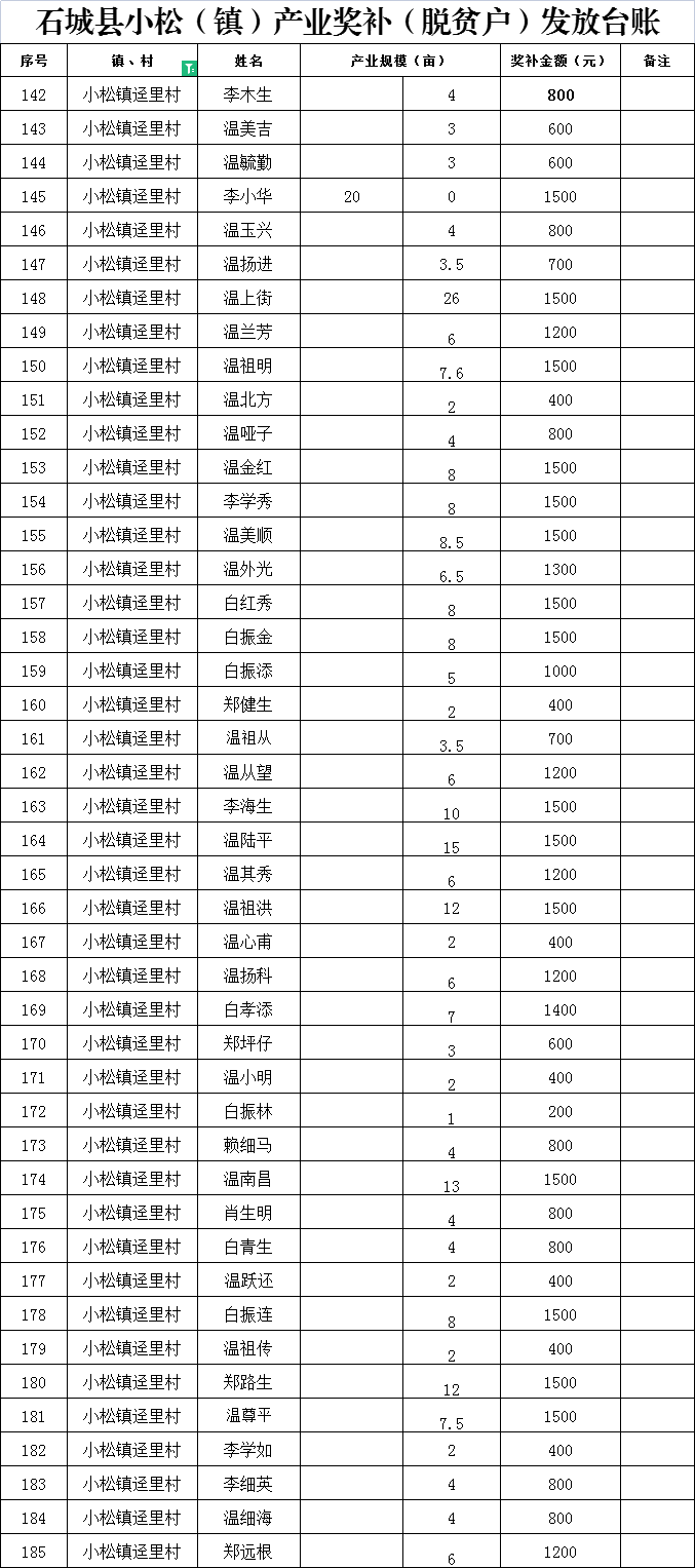 【產(chǎn)業(yè)扶持】石城縣小松(鎮(zhèn))逕里村產(chǎn)業(yè)獎補(bǔ)(脫貧戶)發(fā)放臺賬