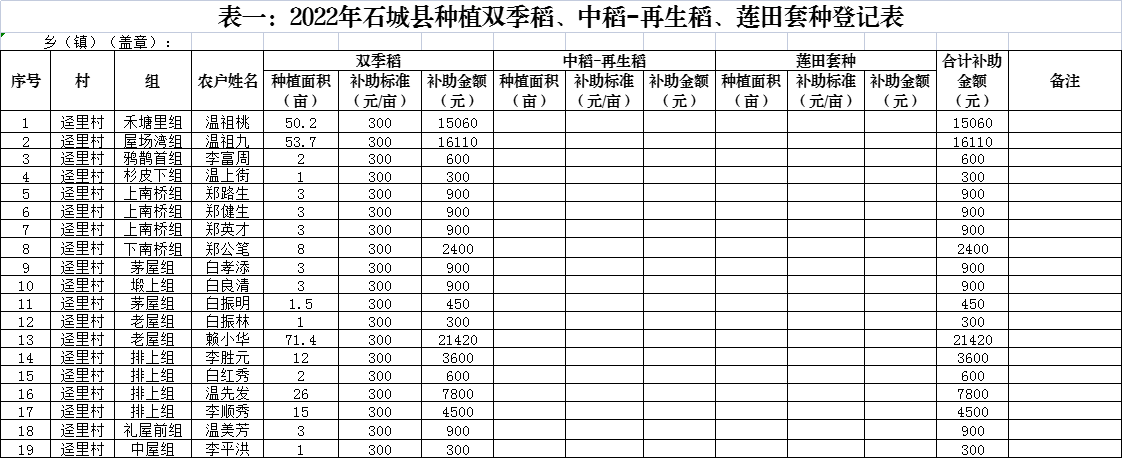 【產(chǎn)業(yè)扶持】逕里村2022年種植雙季稻、中稻-再生稻、蓮田套種補(bǔ)貼公示表