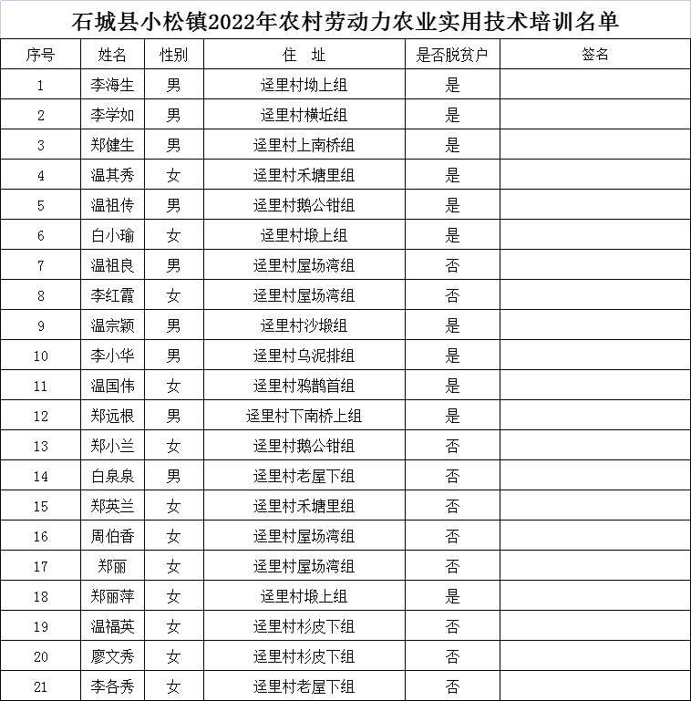 【產業(yè)扶持】逕里村2022年農村勞動力農業(yè)實用技術培訓人員名單