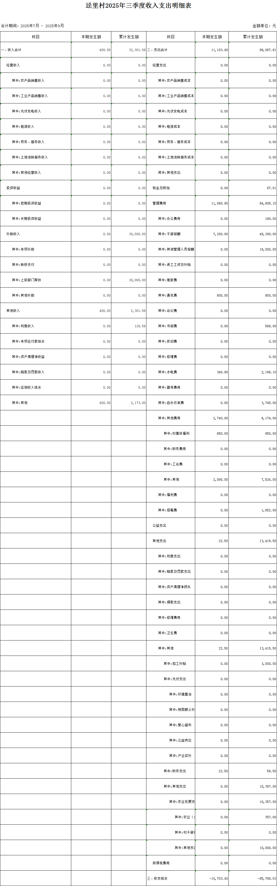 【財務(wù)收支】小松鎮(zhèn)逕里村2025年3季度財務(wù)收支公示