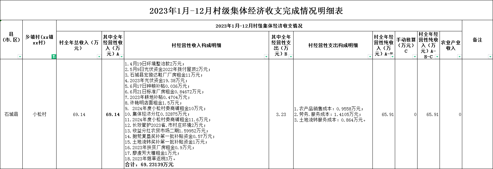 【集體統(tǒng)一經(jīng)營的經(jīng)營性資產(chǎn)】石城縣小松鎮(zhèn)小松村2023年村集體經(jīng)濟收入情況公示表