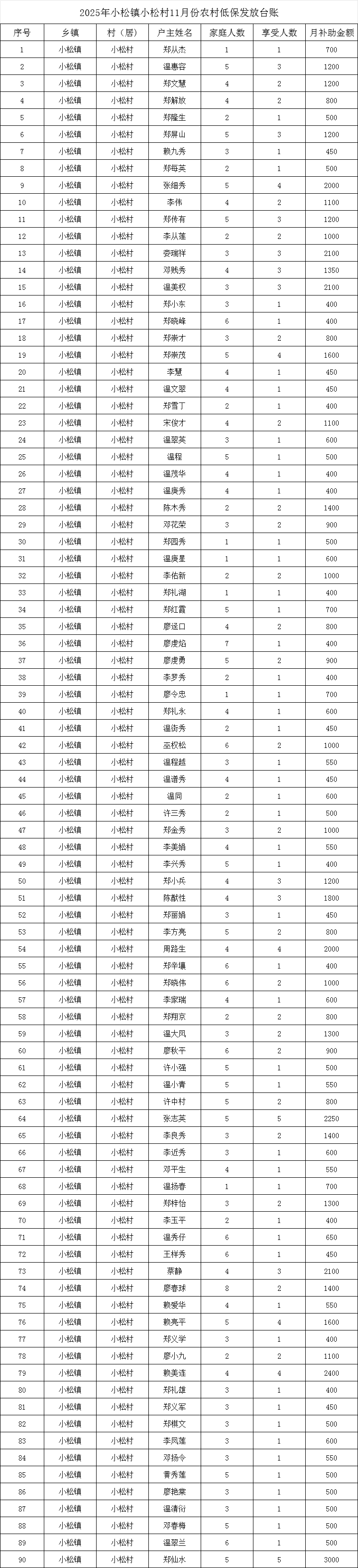【最低生活保障】小松鎮(zhèn)小松村2025年11月農(nóng)村低保發(fā)放公示