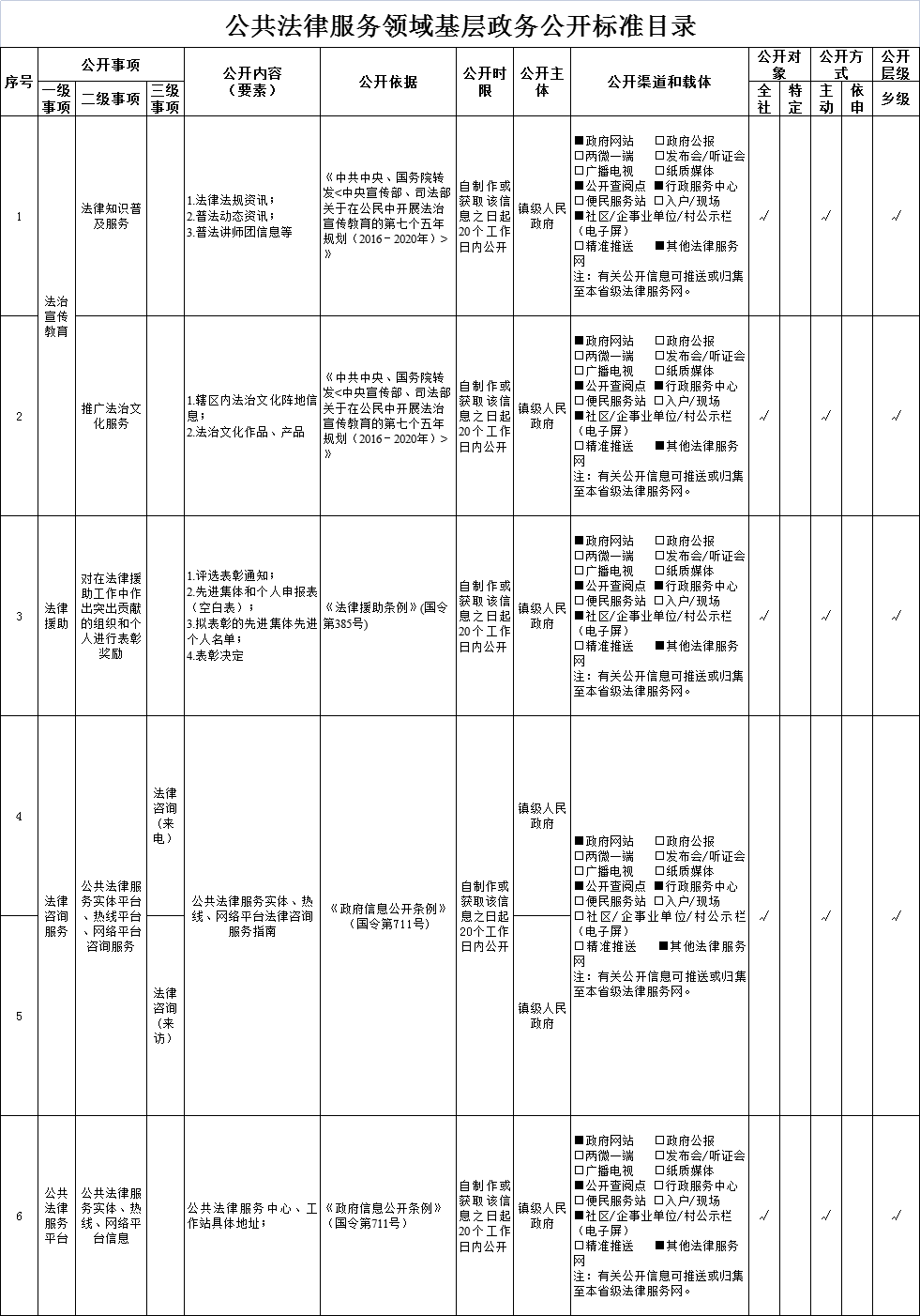 公共法律服務(wù)領(lǐng)域基層政務(wù)公開標(biāo)準目錄