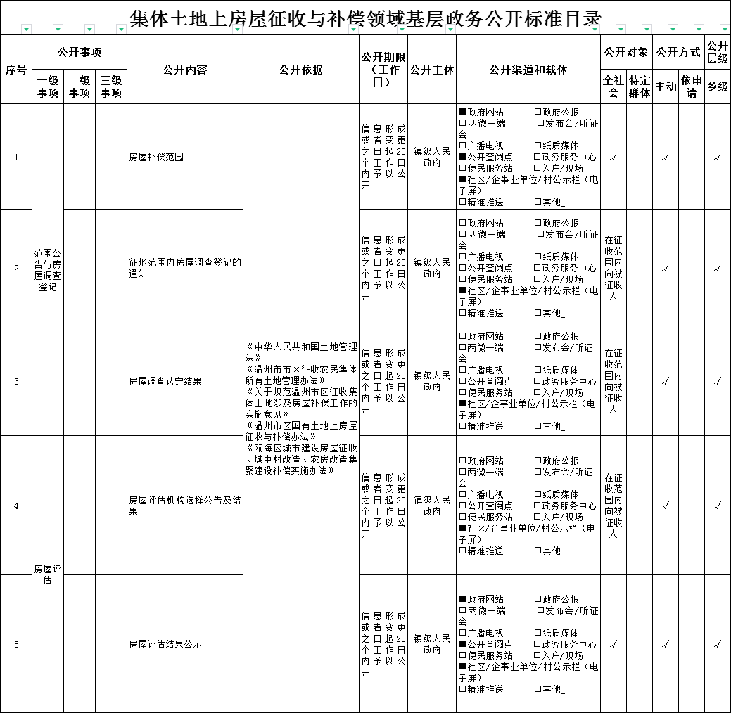 集體土地上房屋征收與補償領(lǐng)域基層政務(wù)公開標(biāo)準(zhǔn)目錄