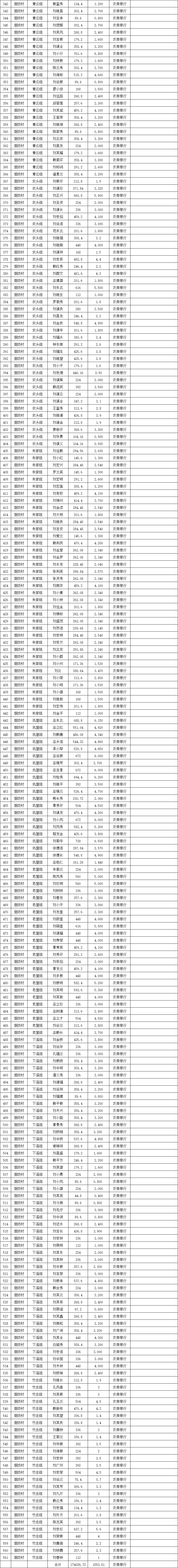 橫江鎮(zhèn)煙坊村2023年耕地地力保護補貼“一卡通”發(fā)放表