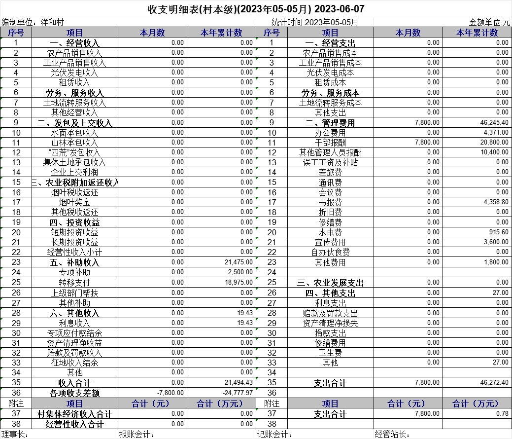【財務收支】洋和村2023年5月財務收支明細表