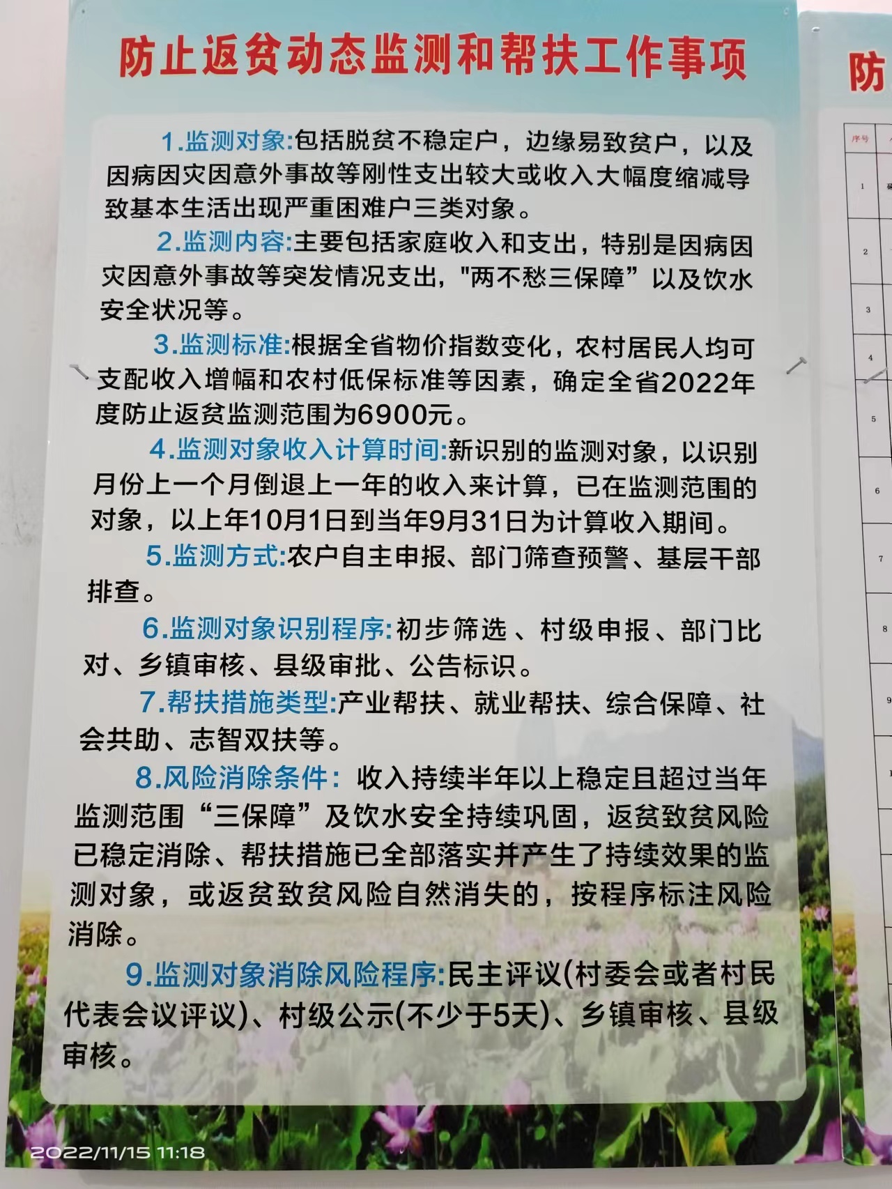 防止返貧動(dòng)態(tài)監(jiān)測(cè)和幫扶工作事項(xiàng)