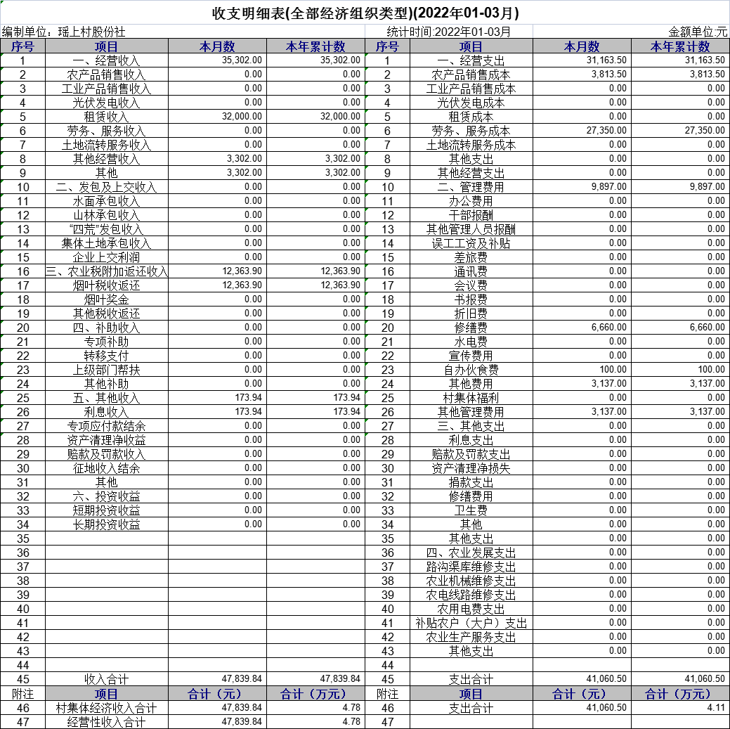 【財(cái)務(wù)收支】小松鎮(zhèn)瑤上村2022年1季度財(cái)務(wù)收支公示