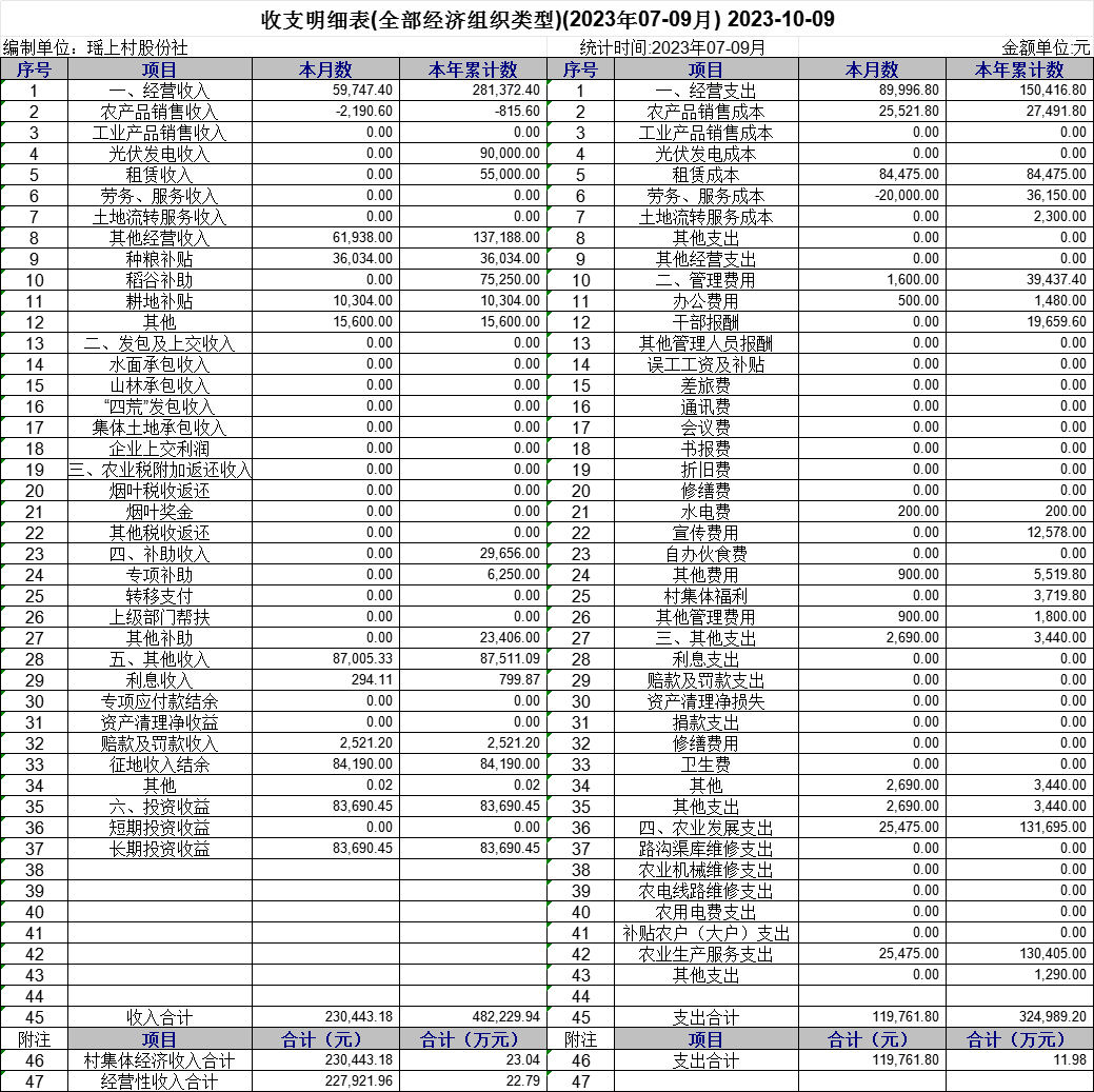【財(cái)務(wù)收支】小松鎮(zhèn)瑤上村2023年3季度財(cái)務(wù)收支公示