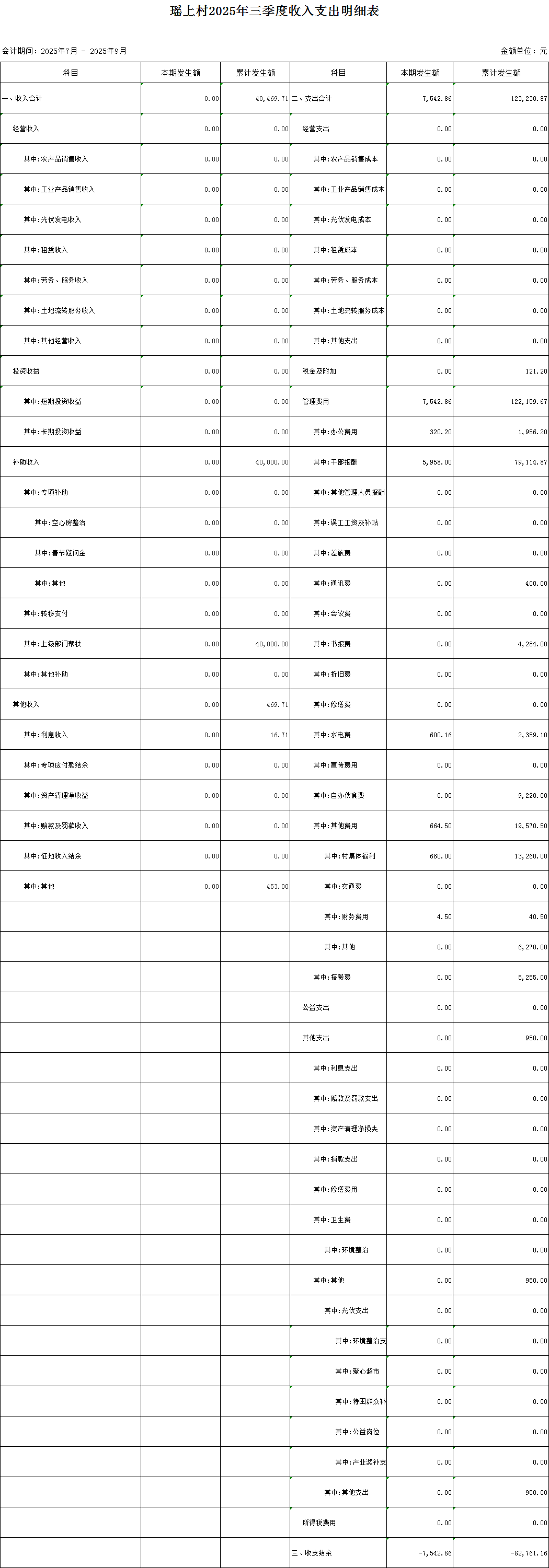 【財務收支】小松鎮(zhèn)瑤上村2025年3季度財務收支公示