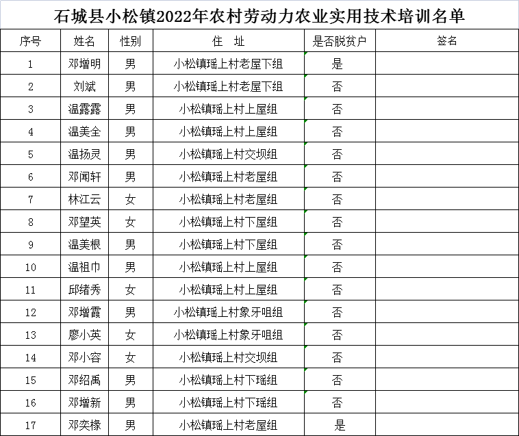 【產(chǎn)業(yè)扶持】瑤上村2022年農(nóng)村勞動力農(nóng)業(yè)實(shí)用技術(shù)培訓(xùn)人員名單