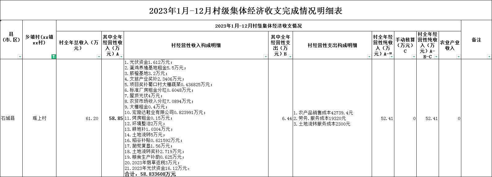 【集體統(tǒng)一經(jīng)營的經(jīng)營性資產(chǎn)】石城縣小松鎮(zhèn)瑤上村2023年村集體經(jīng)濟(jì)收入情況公示表