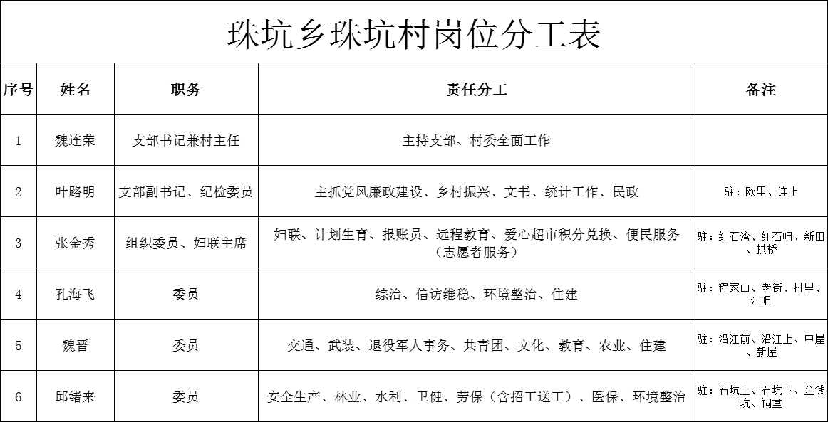 【村(居)委會(huì)班子成員】珠坑村兩委班子成員信息