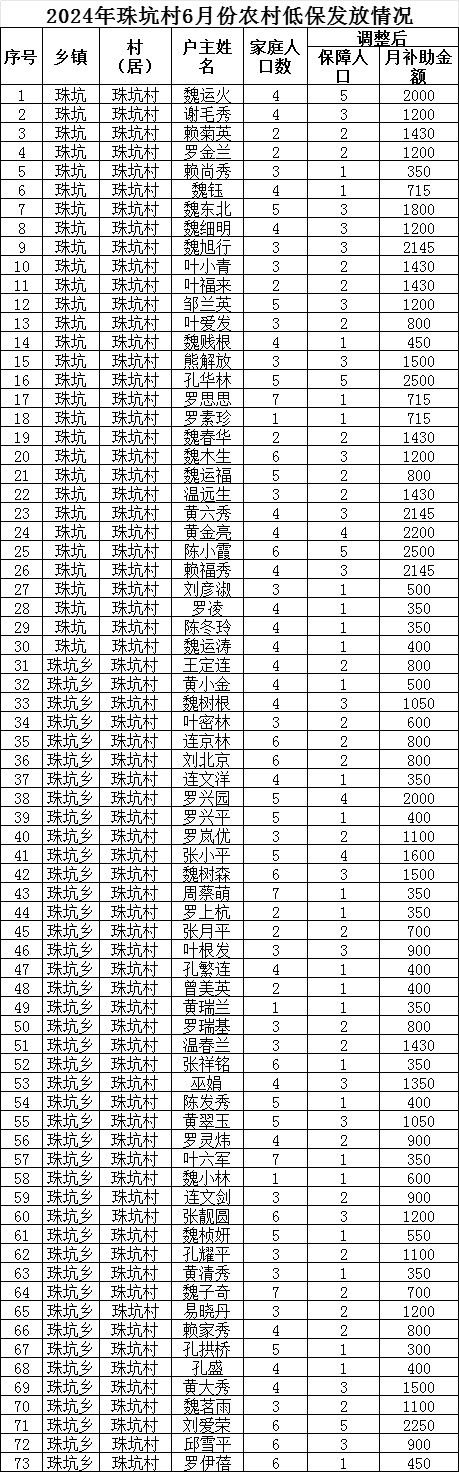 2024年珠坑村6月份農(nóng)村低保發(fā)放情況