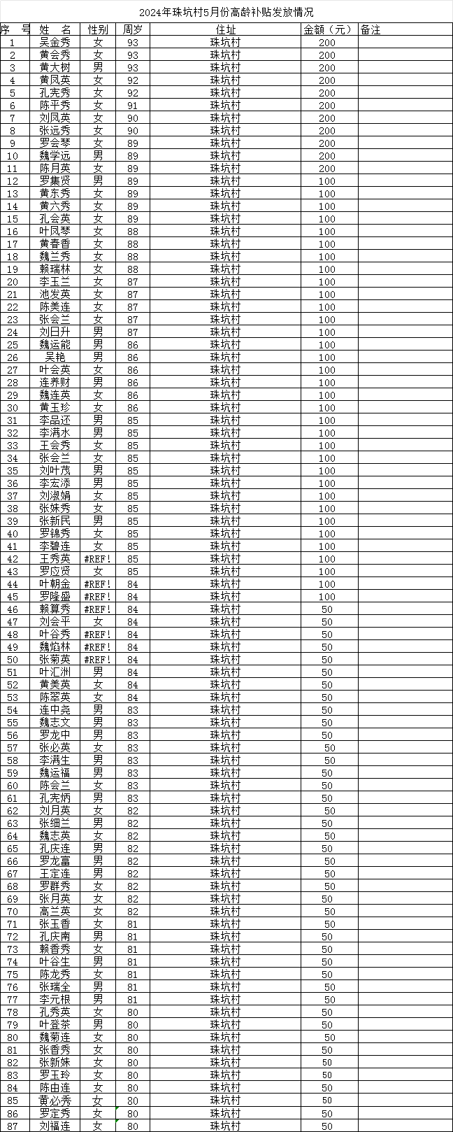 2024年珠坑村5月份高齡補(bǔ)貼發(fā)放情況