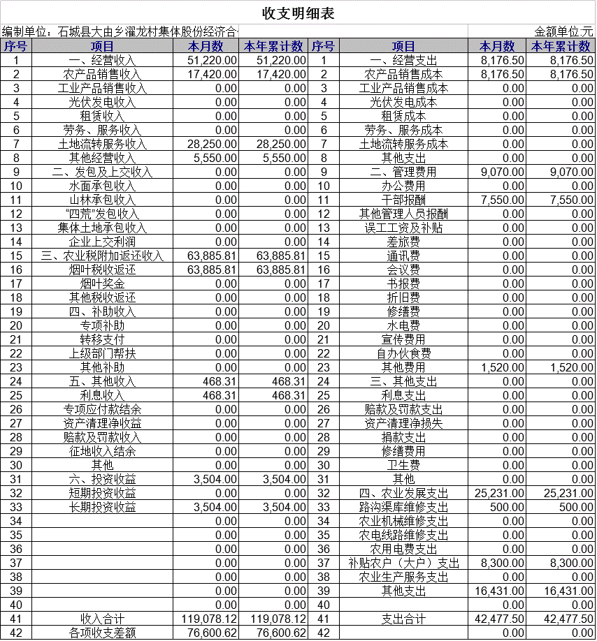 大由鄉(xiāng)濯龍村1-6月收支明細