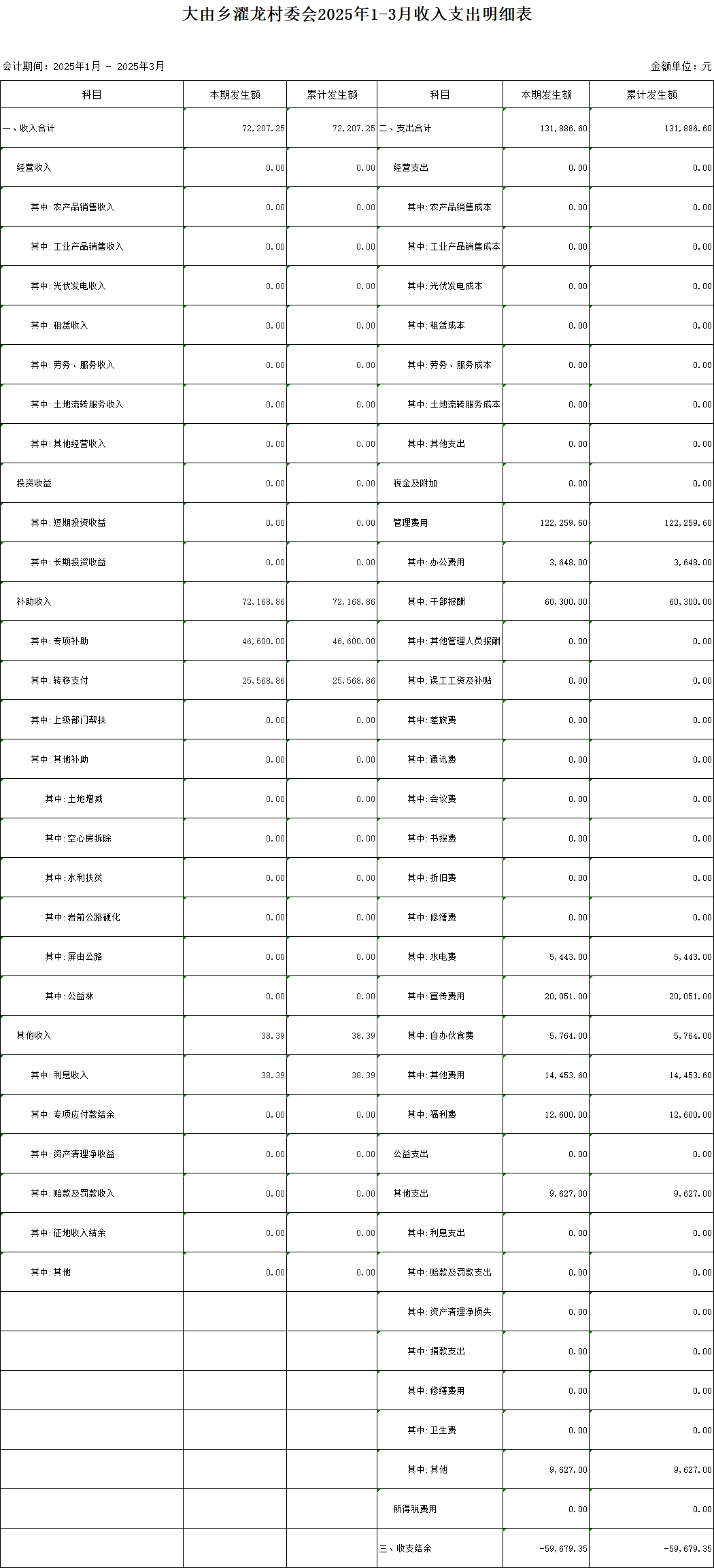 大由鄉(xiāng)濯龍村委會(huì)2025年1-3月收入支出明細(xì)表