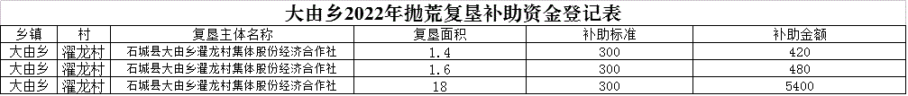 大由鄉(xiāng)濯龍村2022年拋荒復(fù)墾補助資金登記表