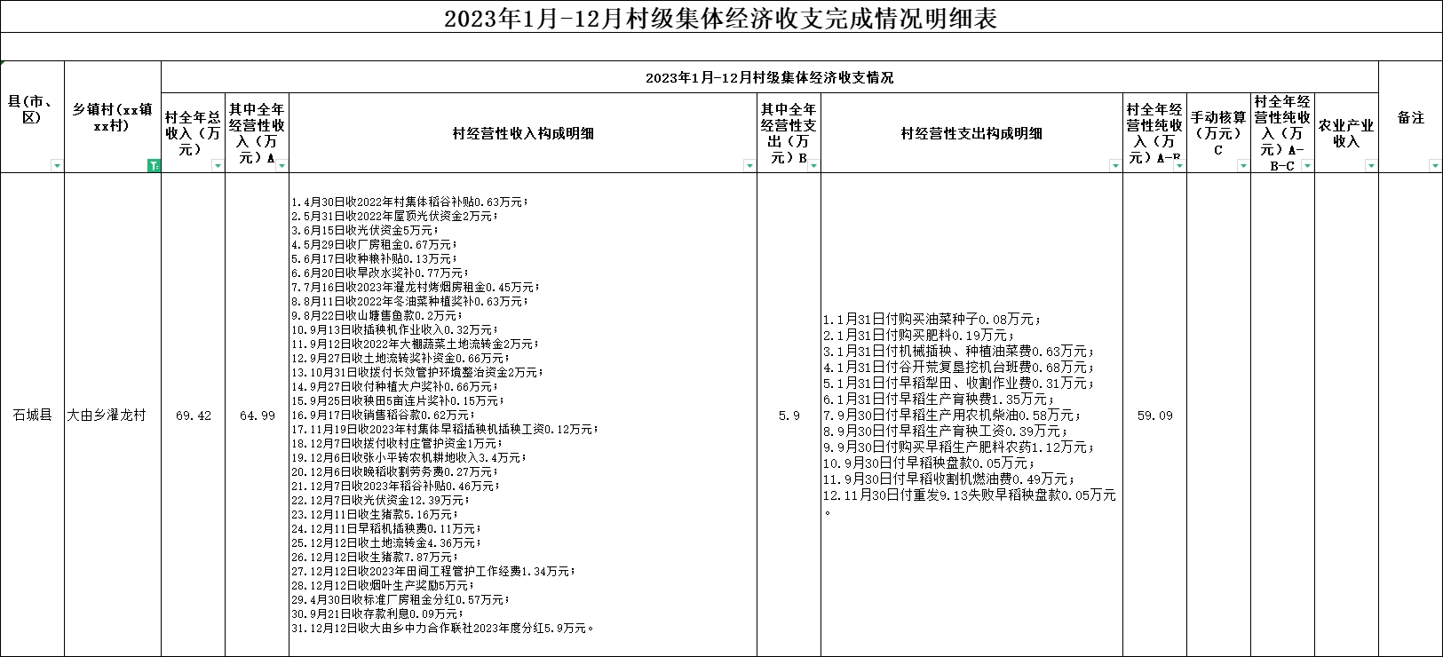 2023年1月-12月村級集體經(jīng)濟(jì)收支完成情況明細(xì)表